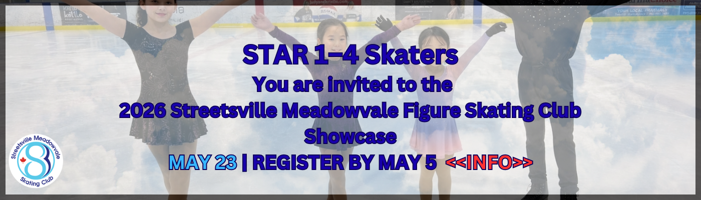 Our aim is to help each skater achieve his or her personal goals, enhance self-esteem and promote a healthy lifestyle. We do this by teaching high quality skating skills in a friendly, accessible, team-oriented environment. Based in Rink 3 of Meadowvale Four Rinks, we are a not-for-profit Skate Canada-sanctioned club with our year-round operations made possible thanks to our dedicated team of volunteers, who work alongside professional skating coaches.